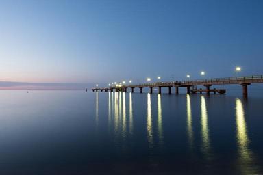 Keywords: sea bridge göhren baltic sea island rügen sunset twilight lanterns