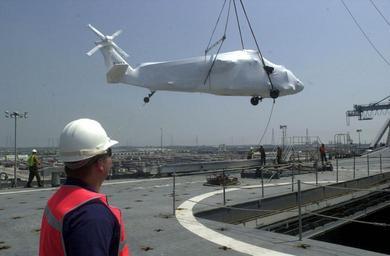 | Keywords: SEA EMERGENCY DEPLOYMENT READINESS EXERCISE DVIDS1072130.jpg en JACKSONVILLE Fla July 19 --Petty Officer 1st Class Johnny Hall serves as a safety observer while an Army Blackhawk helicopter covered in shrink-wrap is hoisted aboard a U S Navy ship at the Port of Jacksonville July 19 during a Sea Emergency Deployment Readiness exercise More than 250 pieces of military equipment was shipped to Jacksonville Fla from Fort Campbell Ky The real world security mission required long hours for MSO Jacksonville Station Mayport and Group Mayport Coast Guard law enforcement teams provided pier-side security along with water-side security while the ship was in port USCG photo by PA1 Scott Carr 2002-07-19 https //www dvidshub net/image/1072130 1072130 2013-12-11 15 37 JACKSONVILLE FL US PD-USGov Fort Campbell Images from DoD uploaded by Fæ |