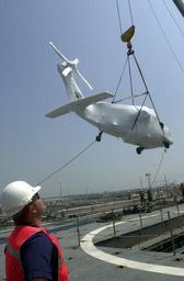 | Keywords: SEA EMERGENCY DEPLOYMENT READINESS EXERCISE DVIDS1072131.jpg en JACKSONVILLE Fla July 19 --Petty Officer 1st Class Johnny Hall serves as a safety observer while an Army Blackhawk helicopter covered in shrink-wrap is hoisted aboard a U S Navy ship at the Port of Jacksonville July 19 during a Sea Emergency Deployment Readiness exercise More than 250 pieces of military equipment was shipped to Jacksonville Fla from Fort Campbell Ky The real world security mission required long hours for MSO Jacksonville Station Mayport and Group Mayport Coast Guard law enforcement teams provided pier-side security along with water-side security while the ship was in port USCG photo by PA1 Scott Carr 2002-07-19 https //www dvidshub net/image/1072131 1072131 2013-12-11 15 37 JACKSONVILLE FL US PD-USGov Fort Campbell Images from DoD uploaded by Fæ |