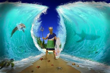 Keywords: sea fantasy water sky mood composing wave blue dolphin fish surf head hai turtle serene funny starfish azur ground sand trident crown