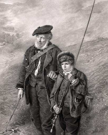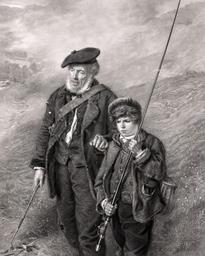 Keywords: sea fishing fishing man boy lad old people person beautiful black white vintage art etching print poster card sea ocean