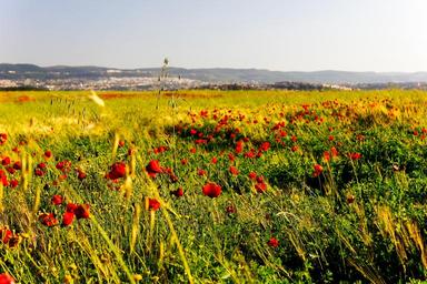 Keywords: sea of flowers poppies in wheat field hope ye tian ripple warm