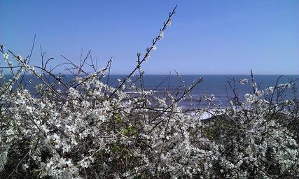 Keywords: sea horizon blue hawthorn flower white flowers blue sky beautiful sky ocean water cloudless