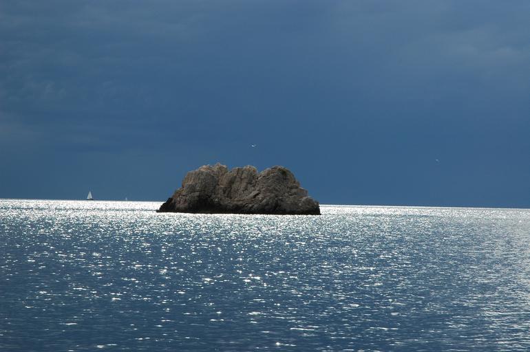 Keywords: sea island rock island rock clouds weather mood weather mood maritime lighting gloomy dark clouds dramatic sky on lake blue