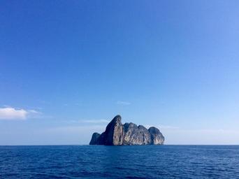 Keywords: sea lake water boot on lake nature blue sky rock reef island thailand kho phi phi mayonnaise maya beach holiday cliffs