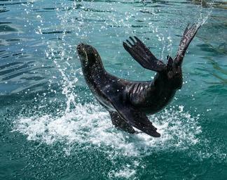 Keywords: sea lion stunt sea animal performance trick entertainment acrobat jump