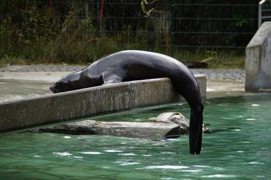 Keywords: sea lion zoo aquatic animal lazy hang out lying around meeresbewohner water creature