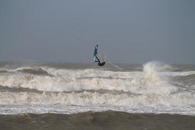 Keywords: sea man beach surfer ocean waves surfboard jump wind