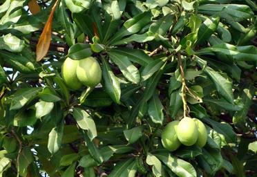 Keywords: sea mango madagascar ordeal bean odollam tree pink-eyed cerbera dog-bane cerbera manghas apocynaceae cerbera venenifera tanghinia venenifera tree flora fruit mumbai india
