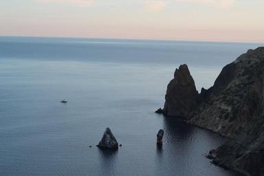 Keywords: sea mountains bay horizon fiolent crimea sky journey blue sky pink sky