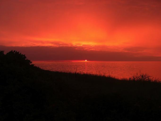 Keywords: sea ocean water forest trees sunset sky clouds romantic beauty beautiful vibrant colors' colorful' season outside outdoors sun lights peaceful calm