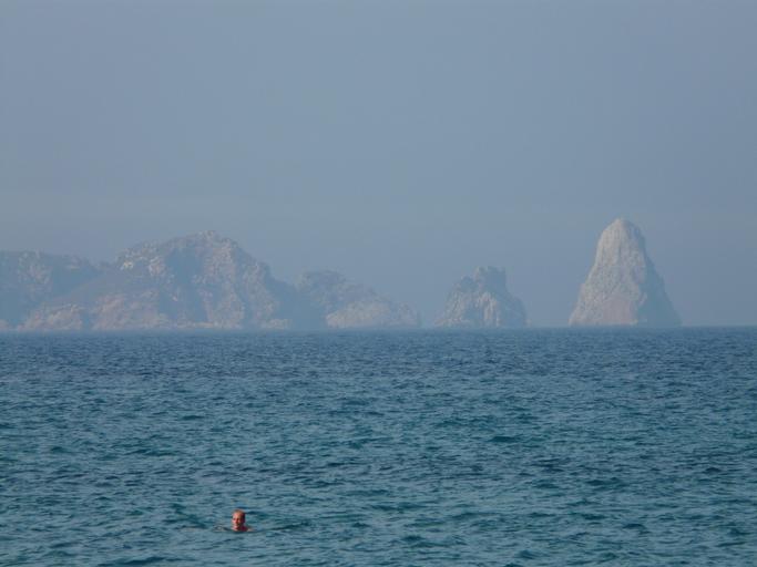 Keywords: sea swim swimmer human man rock island illes medes medas island group l'estartit karst islands mediterranean catalonia costa brava spain