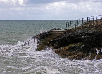 Keywords: sea tide ladder beach sky water nature stones wave seascape journey clouds