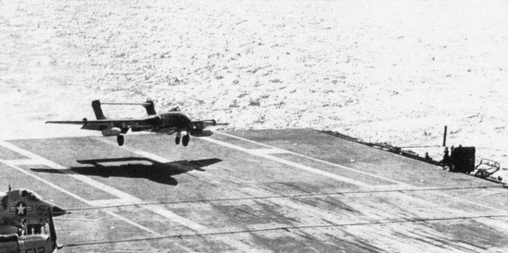| Keywords: Sea Vixen FAW1 892 NAS landing on USS Ranger (CVA-61) 1963.jpg A Royal Navy De Havilland Sea Vixen FAW 1 from 892 Naval Air Squadron landing aboard the U S Navy aircraft carrier USS Ranger CVA-61 off the Philippines between 7 and 14 January 1963 892 NAS was assigned to the aircraft carrier HMS Hermes R12 for a deployment to the Western Pacific from May 1962 to October 1963 Official U S Navy photograph http //navysite de/cruisebooks/cv61-63/139 htm fromt he http //navysite de/cruisebooks/cv61-63/index_007 htm 1962-63 Cruise Book 1963-01 USN PD-USGov-Military-Navy De Havilland Sea Vixen Aboard USS Ranger CV-61 892 Naval Air Squadron |