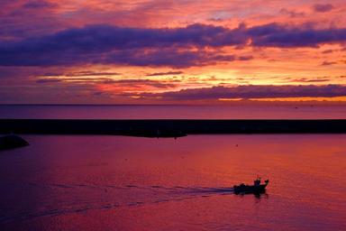 Keywords: sea water ocean sun sunrise sunlight beautiful outdoor morning boat color cloud freedom horizon yellow red purple