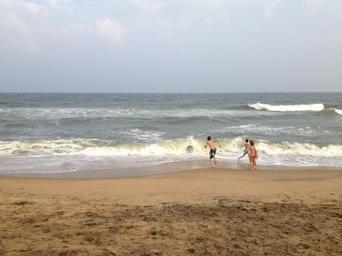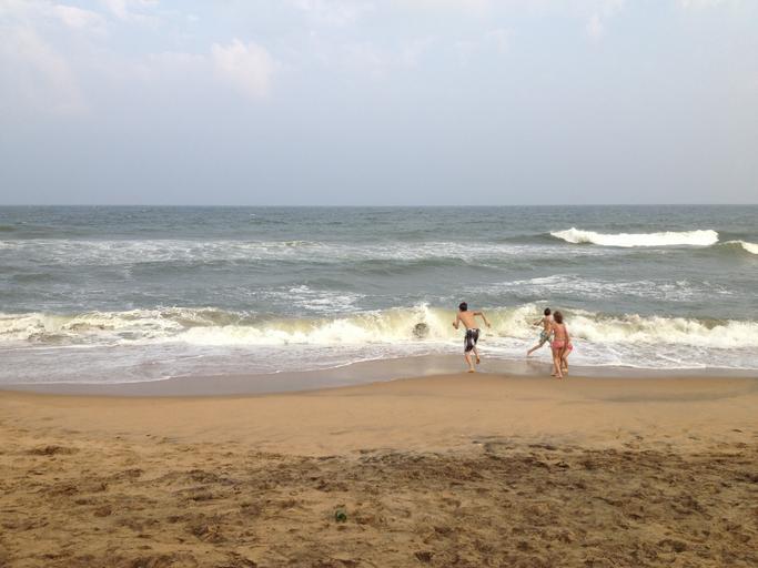 Keywords: sea wave surf beach windy ocean wide sand children india south india horizon salt water