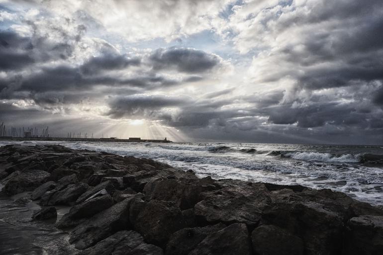 Keywords: sea winter clouds rocks water sun ray landscape costa waves beach nature