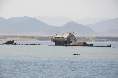 Keywords: sea wreck ship water blue shipwreck mountains beach