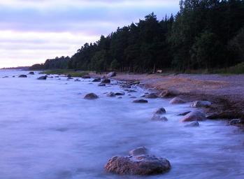 Keywords: seacoast rocks ocean landscape water trees scenic coastline romantic