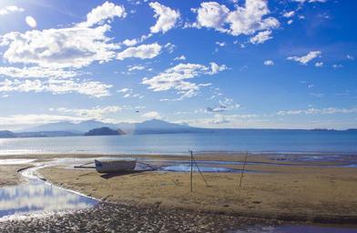 Keywords: seafront clouds blue skies boat sea sea shore shore