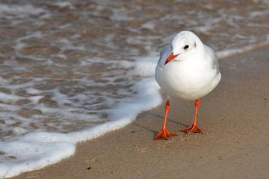 Keywords: seagull beach baltic sea water bird gull animal black headed gull wave coast sand beach holiday maritime