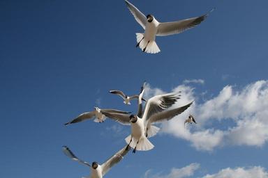 Keywords: seagull beach sky clouds blue fly bird sea coast animal baltic sea nature plumage bill