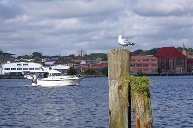 Keywords: seagull bollard maritime port sunny summer day sky water atmospheric warm wave