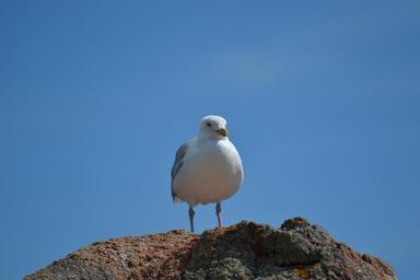 Keywords: seagull european herring gull larus argentatus bird sea bird blue sky rock seaside day time summer