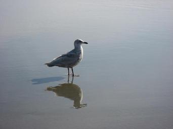 Keywords: seagull gull bird reflection shore pacific oregon coast newport