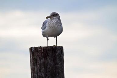 Keywords: seagull perched bird wildlife nature looking seabird pier post piling gull cloudy macro marine outdoors seaside