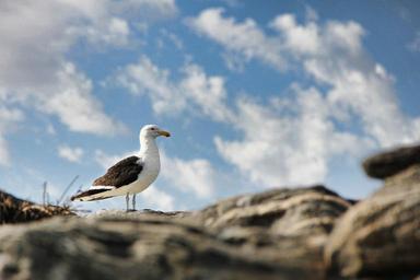 Keywords: seagull sky bird blue coast clouds white blue sky