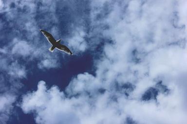 Keywords: seagull sky bird blue flying clouds wings freedom cloudscape