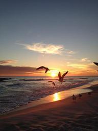 Keywords: seagulls sunset beach sea sky water nature bird silhouette orange horizon