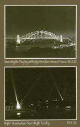 | Keywords: archives state records nsw staterecordsnsw newsouthwales blackandwhite photo border monochrome black and white Title: Searchlights Playing on Bridge, from Government House. Night Illuminations Searchlight Display Dated: 19/03/1932 Digital ID: 12685_a007_a00704_8734000072r Series: NRS 12685 Sydney Harbour Bridge Photographic Albums Rights: No known copyright restrictions www.records.nsw.gov.au/about-us/rights-and-permissions We'd love to hear from you if you use our photos/documents. Many other photos in our collection are available to view and browse on our website using Photo Investigator. Title: Searchlights Playing on Bridge, from Government House. Night Illuminations Searchlight Display Dated: 19/03/1932 Digital ID: 12685_a007_a00704_8734000072r Series: NRS 12685 Sydney Harbour Bridge Photographic Albums Rights: No known copyright restrictions www.records.nsw.gov.au/about-us/rights-and-permissions We'd love to hear from you if you use our photos/documents. Many other photos in our collection are available to view and browse on our website using Photo Investigator. |