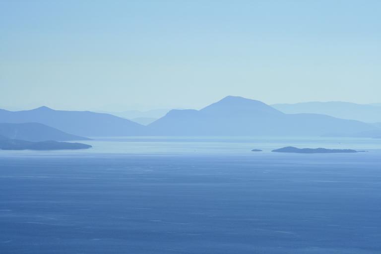 Keywords: seascape coast shore sea ocean islands distant misty summer water nature travel vacation coastline outdoor scenery tranquil