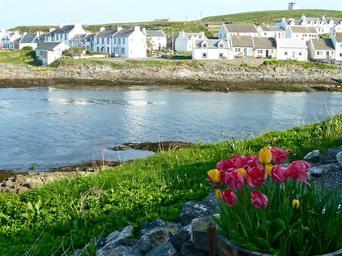 Keywords: seaside houses beach water sea harbor quiet calm relaxing scenic town white flower buildings architecture bay outside