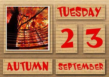 Keywords: season seasons seasonal board wood wooden wall boards leaves fall foliage tree water wave mirroring september calendar date ad time of year at the beginning beginning colorful spring summer autumn winter art figure design flowers trees