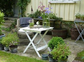 Keywords: seat table chair garden flowers decorations house staircase grass summer plants