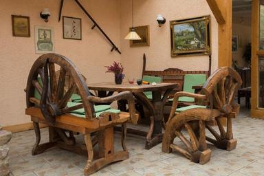 Keywords: seating area rustic rural restaurant table bank chair covered quaint cozy sit weatherproof furniture rest still seat robust farm
