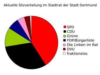 | Keywords: Seating of the town council in dortmund 2007 (de).svg en The seating of the town council in Dortmund Germany 2007 de Die Sitzverteilung im Stadtrat der Stadt Dortmund 2007 own GD2008 2008-08-29 History of Dortmund Election apportionment diagrams of North Rhine-Westphalia City councils Pie charts SVG pie charts Elections in 2007 |