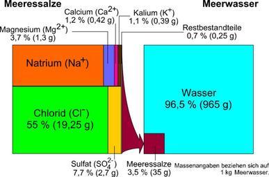 | Keywords: Seawater components.svg en Percental components of seawater de Prozentuale Bestandteile des Meerwassers own Hannes Grobe modified by MarkusZi 2010-01-13 similar same data Raster image German version French version Seawater Oceanographic diagrams SVG diagrams in German |
