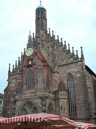 Keywords: sebaldskirche market market umbrellas church nuremberg old town market day gothic facade architecture