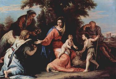 | Keywords: Sebastiano Ricci 054.jpg Artwork Creator Sebastiano Ricci 1709 Oil on canvas cm 73 103 5 Institution Royal Collection The Yorck Project 10 000 Meisterwerke der Malerei DVD-ROM 2002 ISBN 3936122202 Distributed by DIRECTMEDIA Publishing GmbH http //mail wikipedia org/pipermail/wikide-l/2005-April/012195 html other versions PD-old-100 PD-Art-YorckProject Sebastiano Ricci Baroque paintings in the Royal Collection of the United Kingdom 1709 oil on canvas paintings in the United Kingdom 18th-century paintings of angels with humans 18th-century paintings of the Flight into Egypt 18th-century paintings of Madonna and Child with the Infant Saint John 18th-century paintings of Saint Elisabeth Baroque paintings of saints Paintings of John the Baptist holding a cross Paintings of people in nature Religious paintings in the United Kingdom Rococo religious paintings Sacra Conversazione |