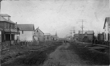 | Keywords: port arthur portarthur thunder bay thunderbay street scenes streetscenes secord street secordstreet residential homes houses churches telegraph wires telegraphwires ontario canada history blackandwhite monochrome outdoor road black and white Date: 1907 Description: This photograph shows Secord Street in Port Arthur in the early 1900's. Primarily a residential neighbourhood, several homes line the dirt street. St. Ansgarius Swedish Church can be seen in the back proper right as well as a few people going about their daily business. Accession No.: 981.8.45 Date: 1907 Description: This photograph shows Secord Street in Port Arthur in the early 1900's. Primarily a residential neighbourhood, several homes line the dirt street. St. Ansgarius Swedish Church can be seen in the back proper right as well as a few people going about their daily business. Accession No.: 981.8.45 |