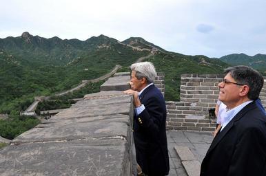| Keywords: Secretaries Kerry and Lew at the Great Wall July 2014.jpg en U S Secretary of State John Kerry looks out from a turret as he and U S Treasury Secretary Jack Lew take a tour of the Badaling section of the Great Wall after arriving in Beijing on July 8 2014 for a two-day Strategic and Economic Dialogue with their Chinese counterparts 2014-07-08 04 06 14 https //www flickr com/photos/statephotos/14600097271/ U S Department of State U S Department of State http //flickr com/photos/9364837 N06/14600097271 2014-07-12 22 01 53 United States Government Work PD-USGov Uploaded with UploadWizard John Kerry visit to China July 2014 Jacob Lew |