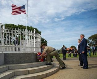 | Keywords: Secretary Clinton and Australian Minister Carr at a Wreath-Laying Ceremony.jpg Hillary Rodham Clinton stands with Australian Foreign Minister Robert Carr during a wreath-laying ceremony at the State War Memorial at Kings Park and Botanic Garden in Perth Australia November 14 2012 http //www aussierelocation com Aussie Relocation U S Embassy in Canberra Australia photo by Travis Longmore/ Public Domain 2012-11-14 https //www flickr com/photos/statephotos/8185347024/ U S Department of State other versions PD-USGov Perth Western Australia Botanical gardens |