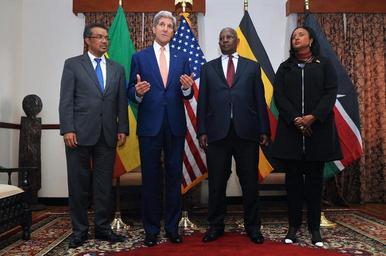 | Keywords: Secretary Kerry Addresses Reporters After Meeting With Ethiopian Regional Foreign Ministers (14101424433).jpg en U S Secretary of State John Kerry flanked on the left by Ethiopian Foreign Minister Tedros Adhanom and the right by Ugandan Foreign Minister Sam Kutesa and Kenyan Foreign Minister Amina Mohamed addresses reporters after the group discussed regional issues in Addis Ababa on May 1 2014 2014-05-01 03 21 52 https //www flickr com/photos/statephotos/14101424433/in/set-72157644031670869 U S Department of State other versions U S Department of State http //flickr com/photos/9364837 N06/14101424433 2014-11-14 18 50 30 United States Government Work PD-USGov Uploaded with UploadWizard John Kerry visit to Africa April-May 2014 John Kerry with national leaders Tedros Adhanom Ghebreyesus Sam Kutesa Amina Mohamed |