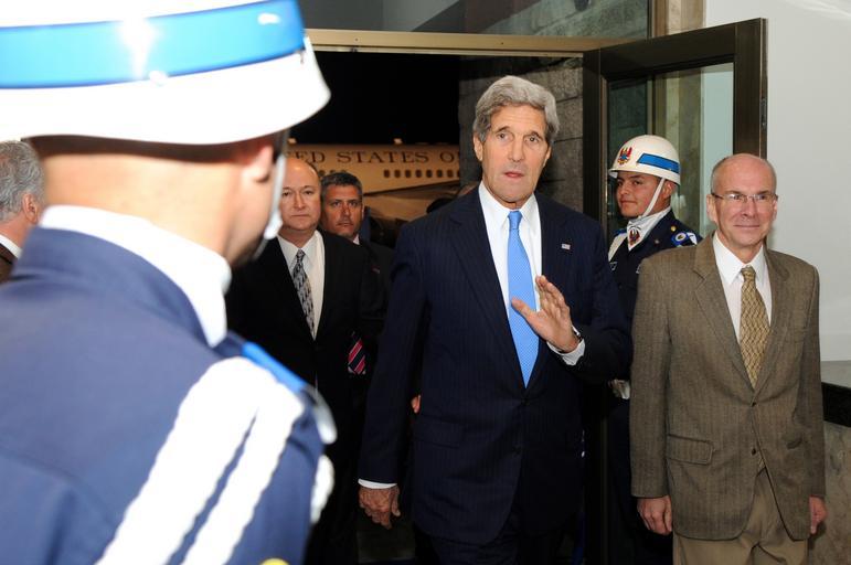 Keywords: Secretary Kerry Arrives in Bogota, Colombia (2).jpg en U S Secretary of State John Kerry accompanied by U S Ambassador to Colombia Michael McKinley waves to a member of an honor guard as he arrives in Bogota Colombia on August 11 2013 State Department photo/ Public Domain 2013-08-12 00 32 22 http //www flickr com/photos/statephotos/9490396591/sizes/o/in/photostream/ U S Department of State U S Department of State http //flickr com/photos/9364837 N06/9490396591 2013-08-12 07 50 53 United States Government Work PD-USGov Uploaded with UploadWizard John Kerry in 2013 |
