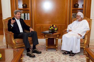 | Keywords: Secretary Kerry Holds Impromptu Bilateral Meeting With Oman Foreign Minister Alawi During Refueling Stop in Muscat.jpg en U S Secretary of State John Kerry sits with Oman Foreign Minister Yusuf bin Alawi during an impromptu bilateral meeting as the Secretary's aircraft refueled in Muscat on November 12 2014 en route from China to Jordan State Department photo/ Public Domain 2014-11-12 16 06 48 http //www flickr com/photos/9364837 N06/15595372107/ U S Department of State other versions 23 617531 58 583439 PD-USGov PD-USGov Bilateral relations of the United States Uploaded with UploadWizard |