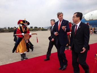 | Keywords: Secretary Kerry is Escorted by Moon Seoung-hyun.jpg en U S Secretary of State John Kerry is escorted by Moon Seoung-hyun Deputy Director General of the Ministry of Foreign Affairs for North America and accompanied by U S Ambassador to South Korea Sung Kim upon his arrival in Seoul South Korea on April 12 2013 State Department photo/ Public Domain 2013-04-12 14 37 20 http //www flickr com/photos/statephotos/8641374349/sizes/o/in/photostream/ U S Department of State 37 449166666667 127 1085 U S Department of State http //flickr com/photos/9364837 N06/8641374349 2013-04-12 12 50 30 United States Government Work PD-USGov Uploaded with UploadWizard John Kerry in 2013 Sung Kim |